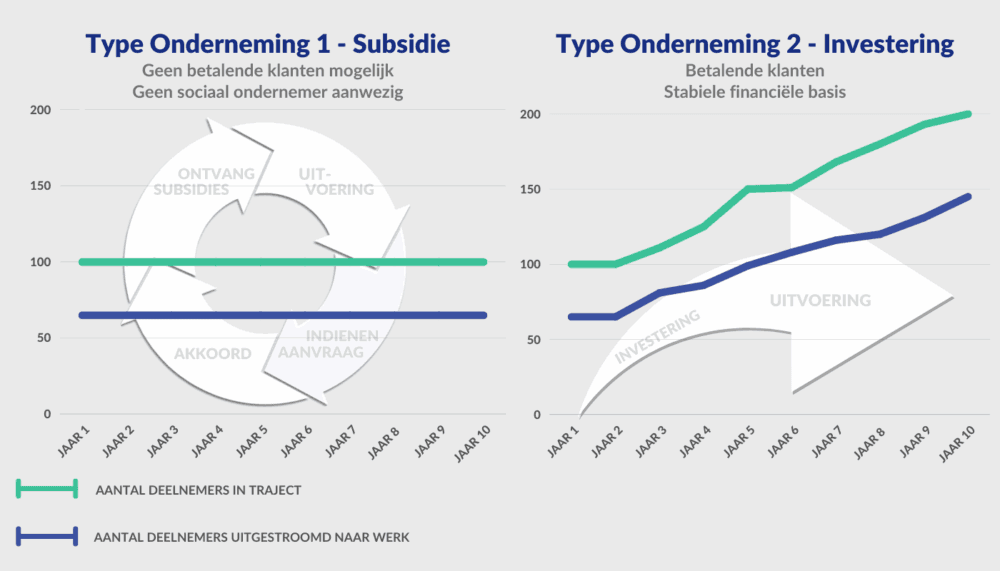 Gelukkig is de stad rijk aan sociale ondernemers die mensen met afstand tot en binnen de arbeidsmarkt ondersteunen in hun zoektocht naar duurzaam werk. Met een investering kunnen zij hun financiële businesscase versterken, hun onderneming laten groeien en dus méér mensen helpen.